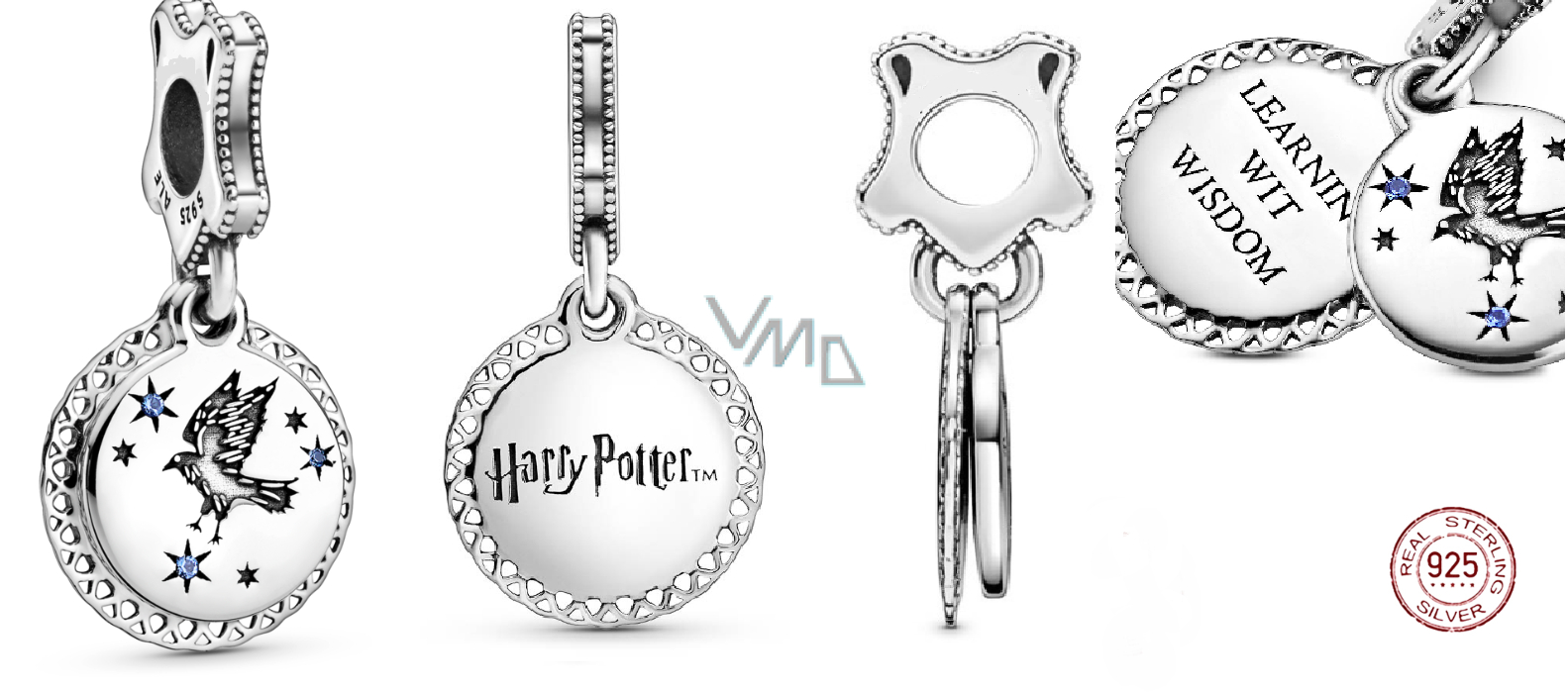 Zawieszka ze srebra 925 Harry Potter - Ravenclaw + cyrkonią, 2w1 charms do bransoletki