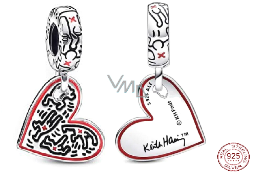 Zawieszka ze srebra 925 Keith Haring serce Sztuka linii i ludzi, koralik do bransoletki symbol134.16 PLN