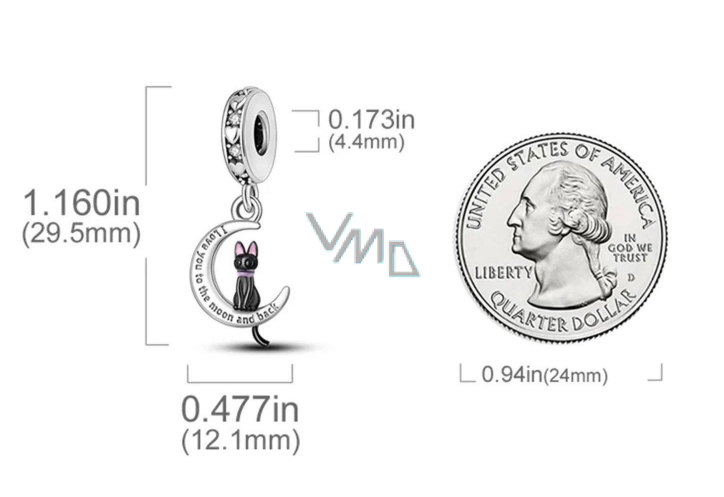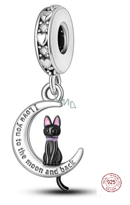 Zawieszka ze srebra próby 925 Kotek z księżycem Kocham Cię, zawieszka do bransoletki dla miłośników kotów
