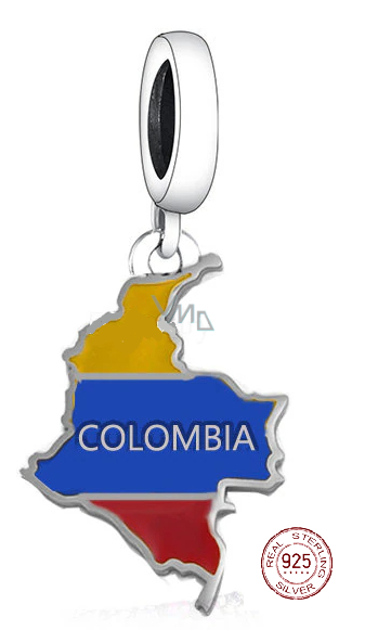 Charm Srebrna 925 Kolumbia flaga - huśtająca się mapa, zawieszka na bransoletkę podróżniczą