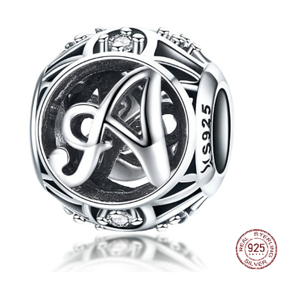 Litera alfabetu, piękny wisiorek ze srebra pasuje do wszystkich bransoletek Pandora, Tedora, Trollbeads lub innych bransoletek. Biżuteria, która jest nawleczona na bransoletkę! Inspirowane literami, poużyj ich do napisania imion osób, które kochasz, lub do napisania słów, które najlepiej wyrażają Twoje uczucia.