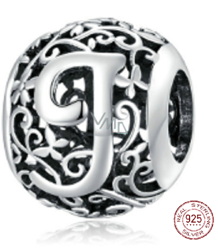 Charm Sterlingové stříbro 925 Kouzelná abeceda písmeno J s květinami, korálek na náramek