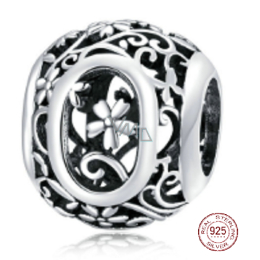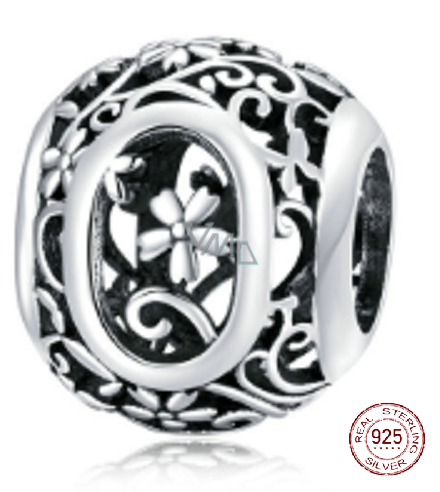 Zawieszka ze srebra próby 925 Charms Alphabet Litera O z kwiatami, koralik do bransoletki