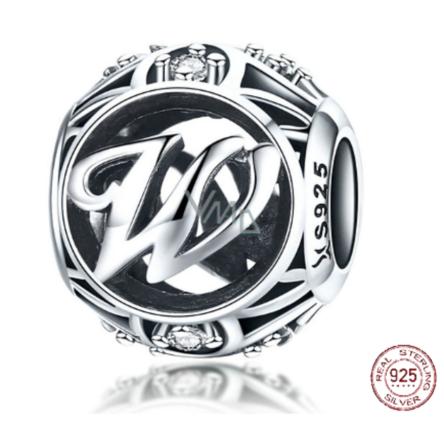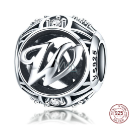 Charm Srebrna 925 Magiczna abeceda litera W + cyrkonie, koralik na bransoletkę
