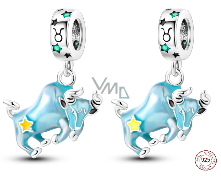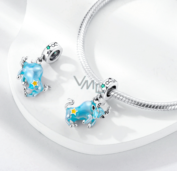 Zawieszka ze srebra próby 925 Luminozny - Znak zodiaku Byk, ozdoba do bransoletki