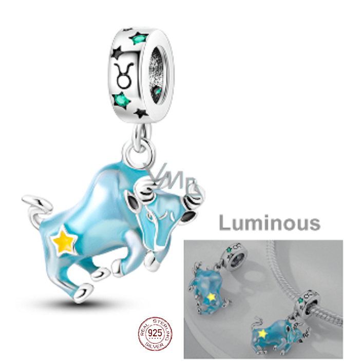 Znak zodiaku, piękna zawieszka ze srebra, która świeci w ciemności. Zawieszka pasuje do wszystkich bransoletek Pandora, Tedora, Trollbeads lub innych bransoletek. Biżuteria, która jest wsuwana na bransoletkę!