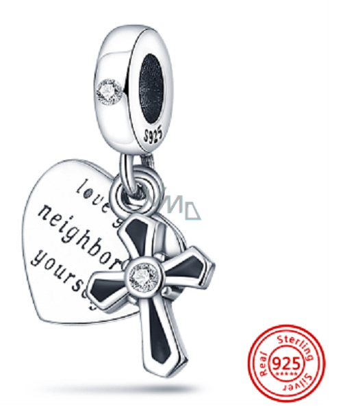 Zawieszka ze srebra próby 925 z cytatem religijnym i imieniem 2w1, do bransoletki