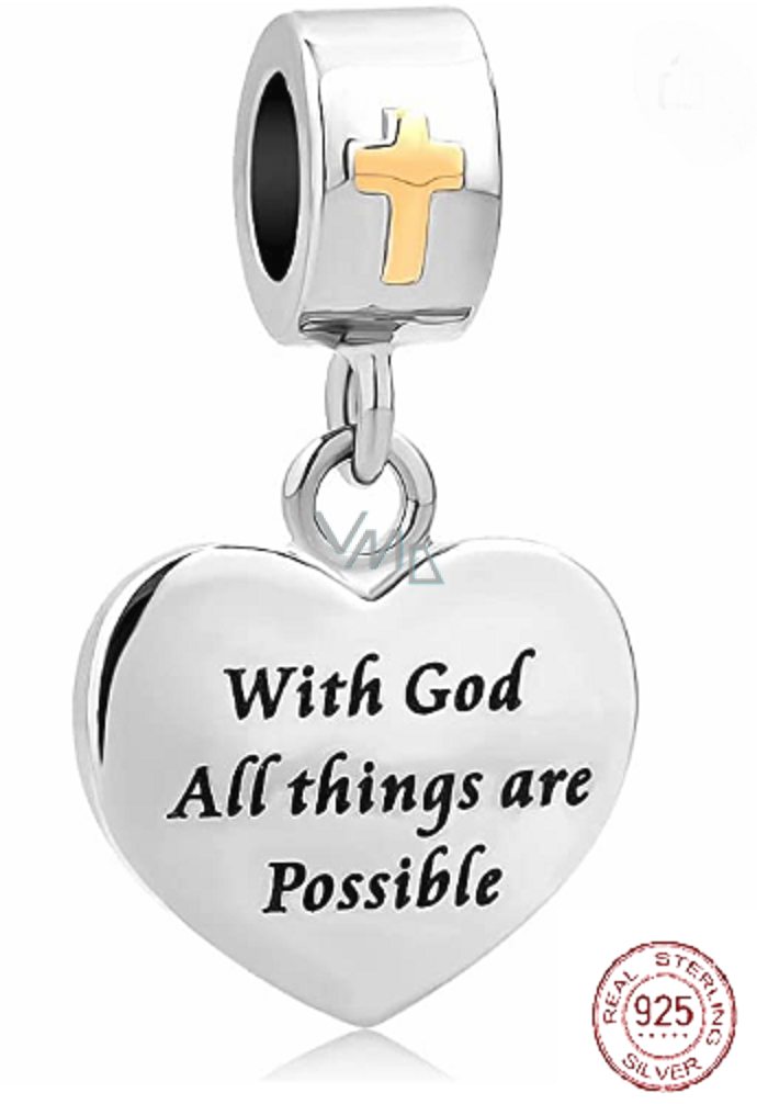 Zawieszka ze srebra próby 925 | Boża wola, wszystko jest możliwe, serce, zawieszka do bransoletki