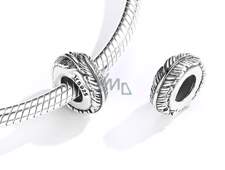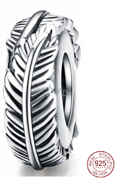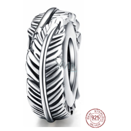 Zawieszka ze srebra próby 925 Pióro, koralik do bransoletki natura