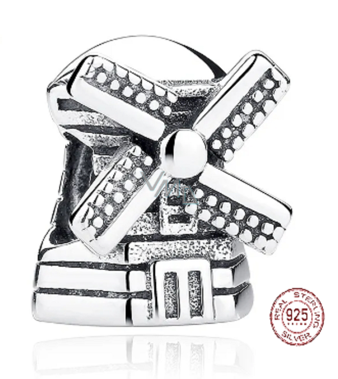 Zawieszka ze srebra próby 925 Grecja, Mykonos Molino de viento, wiatrak, koralik do bransoletki podróżniczej