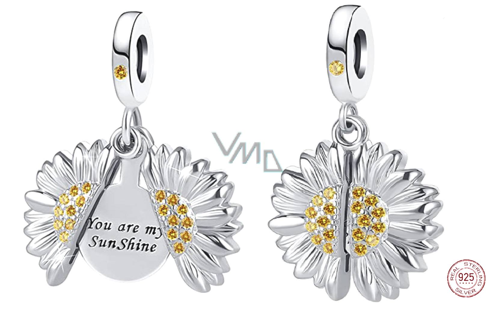 Charm Srebrna 925 Rozkwitająca Słonecznik z napisem - Jesteś moim słoneczkiem, otwierany wisiorek na bransoletkę miłość