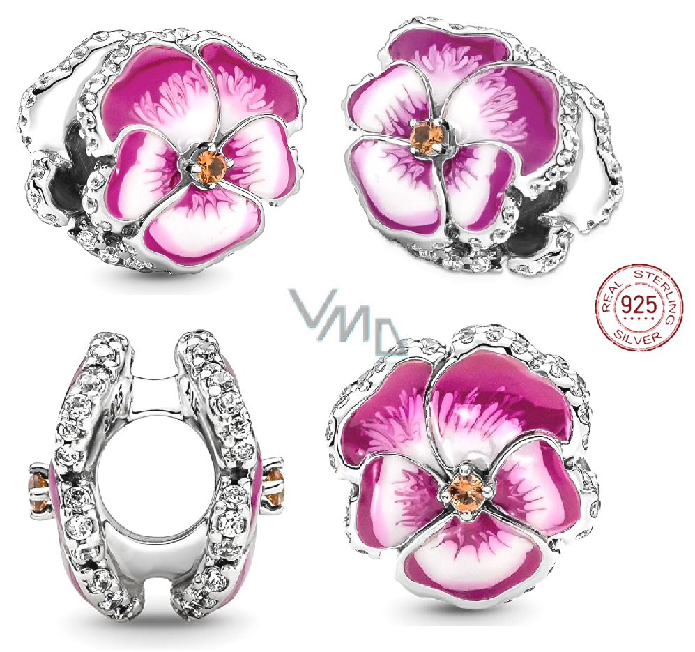 Charm Srebrny 925 Różowa macierzanka, koralik na bransoletkę przyroda