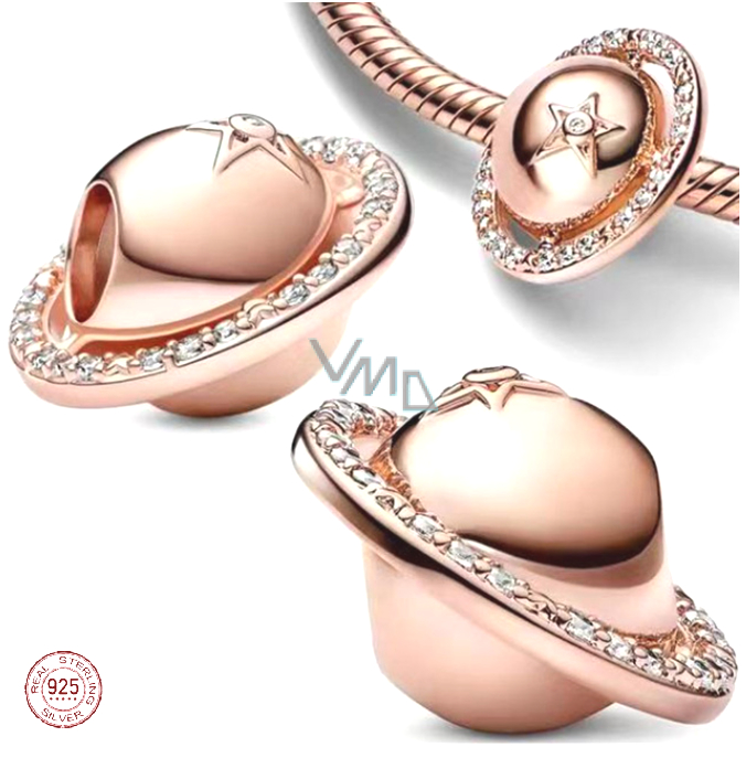 Charm Sterlingové stříbro 925 Mini medailon Planeta Saturn růžová, přívěsek na náramek vesmír112.39 PLN