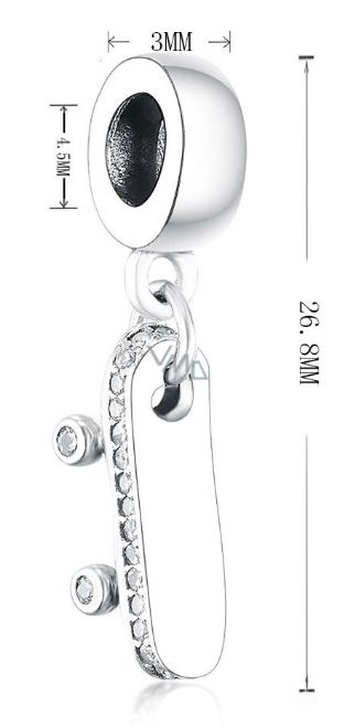 Zawieszka ze srebra próby 925 Skateboard, charms do bransoletki sportowej