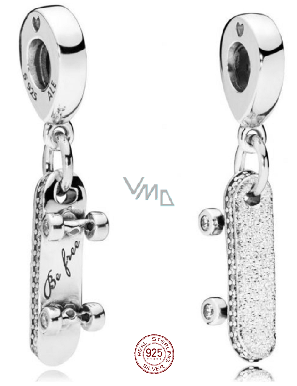Ten uroczy mały zawieszka w kształcie deski do skateboardingu ma teksturę z kubicznymi cyrkoniami osadzonymi wokół krawędzi i w środku kółek. Pod deską znajduje się zabawny grawer „Be free“. Zawieszka jest w nowym stylu, który jest lekko wydłużony i zawiera miniaturowe serduszko.