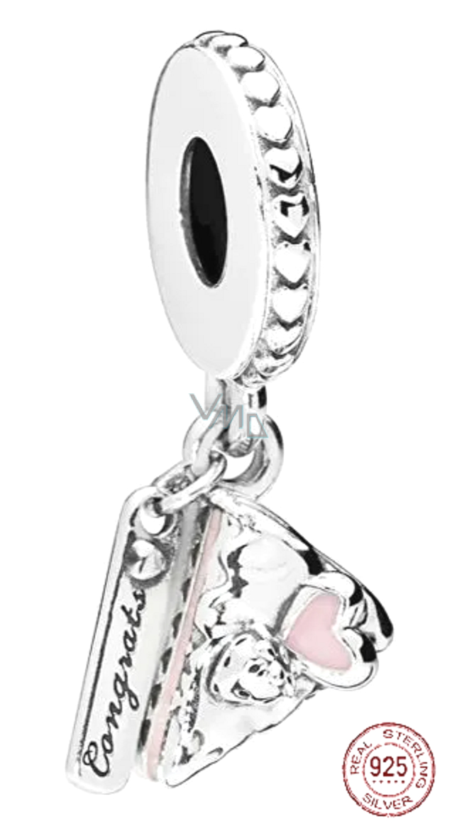 Podaruj kawałek tortu komuś wyjątkowemu, kto zasługuje na świętowanie z tą zawieszką z srebra 925. Albo dodaj ją do swojej osobistej kolekcji, aby przypomnieć sobie o czymś, osobie lub miejscu, które kochasz. Na pierwszy rzut oka zachwycą Cię precyzyjnie dopracowane detale, zawieszkę zdobi różowa glazura oraz napis „Congratulation“ (gratulacje).