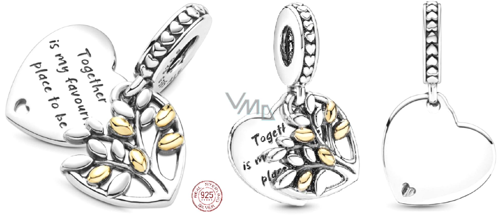 Charm Srebrna 925 Serce i drzewo życia 2w1, zawieszka na bransoletkę rodzina