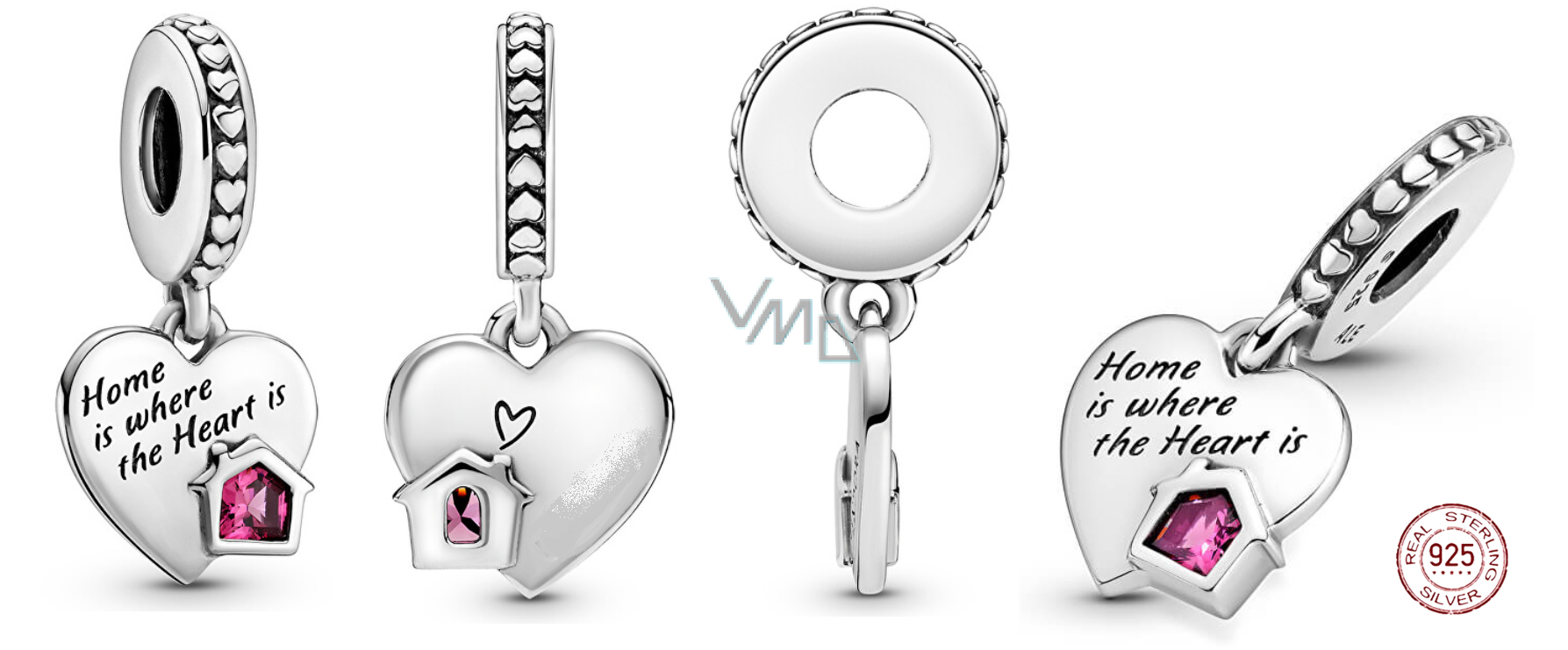 Zawieszka ze srebra próby 925 Serce - Dom jest tam, gdzie jest serce, charms do bransoletki rodzina