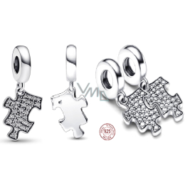 Zawieszka Puzzle, wykonana ze srebra próby 925, jest przypomnieniem, że przyjaciele się uzupełniają. Jedna strona elementu układanki jest ozdobiona błyszczącym cyrkonem, podczas gdy druga strona pozostaje pusta, abyś mógł wygrawerować własną mantrę przyjaźni, jest na niej tylko wygrawerowane małe serduszko. Element będzie pasował do innego, identycznego elementu. Podaruj jeden sobie, a jeden swojemu najlepszemu przyjacielowi i połącz je tak, jak łączy was przyjaźń w zupełnie nowy sposób.