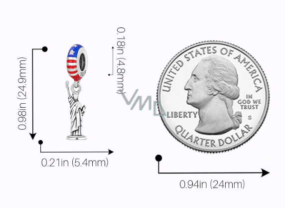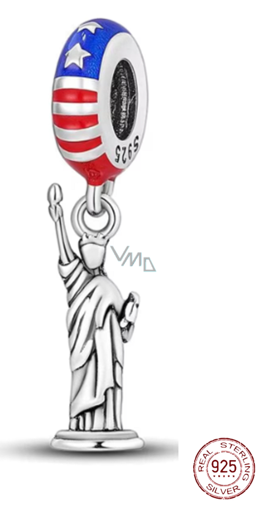 Charm Srebrny 925 USA Amerykańska flaga - Statua Wolności, zawieszka na bransoletkę podróżniczą