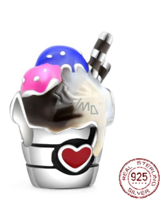 Zawieszka Srebrna 925 Lody, koralik do bransoletki, jedzenie i picie