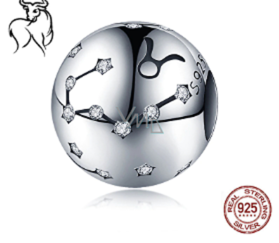 Charm Sterlingové stříbro 925 znamení zvěrokruhu Býk + zirkony, korálek na náramek 9 mm