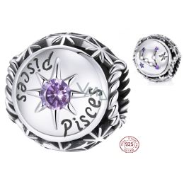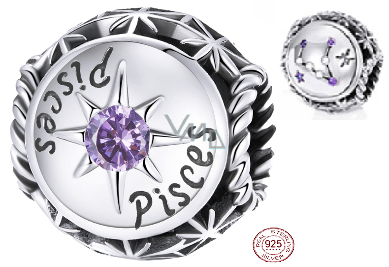 Zawieszka ze srebra 925 Znak zodiaku, cyrkonia sześcienna Ryby, koralik do bransoletki