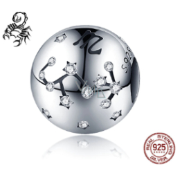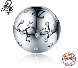 Charm Sterlingové stříbro 925 znamení zvěrokruhu Štír + zirkony, korálek na náramek 9 mm