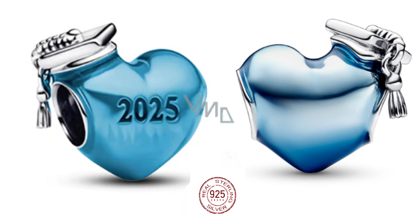 Charm Sterlingové stříbro 925 Gradace Modré promoční srdce 2025, korálek na náramek gradace