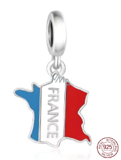 Charm Sterlingové stříbro 925 Francie vlajka - houpající se mapa, přívěsek na náramek cestování