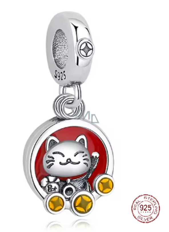 Stříbrný přívěsek 925 – Japonská kočka štěstí Maneki Neko s mincemi