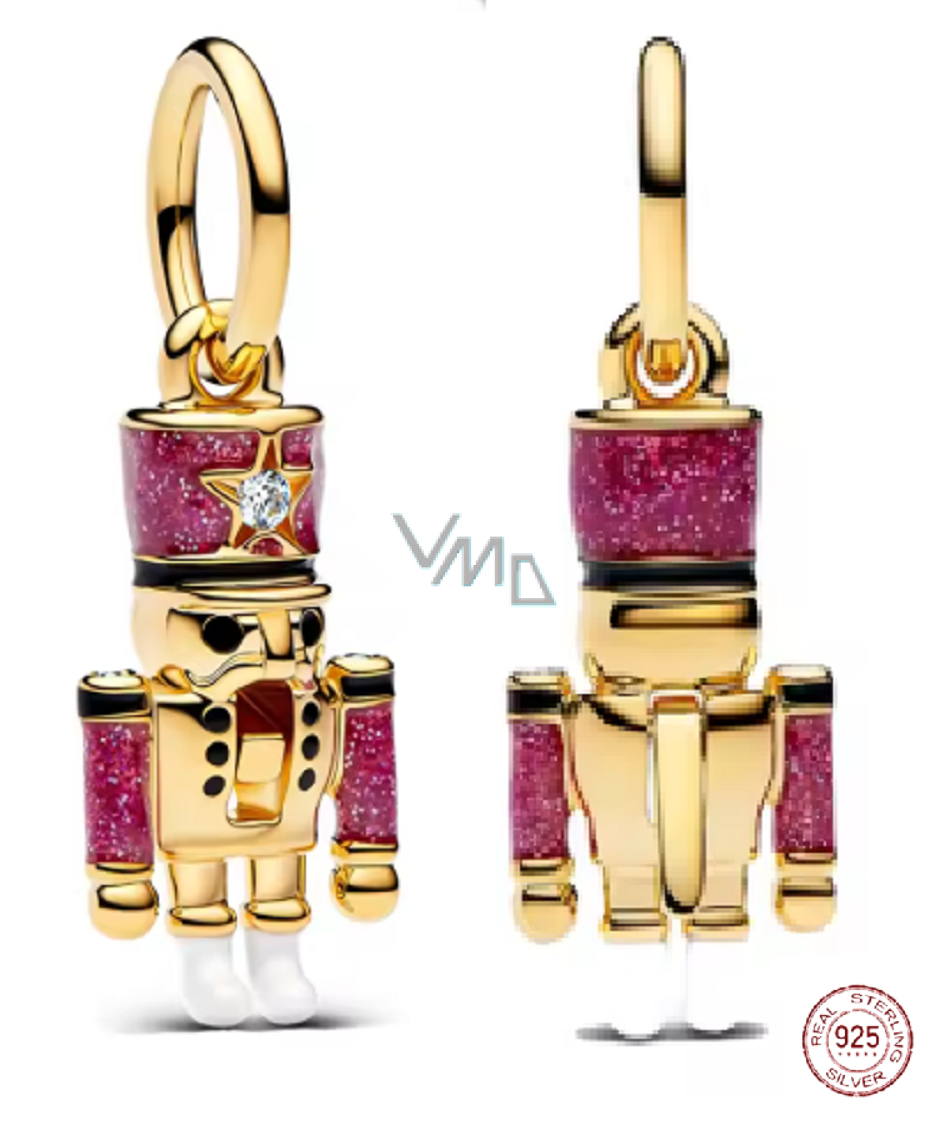 Charm Sterlingové stříbro 925 Louskáček - Symbol odvahy a Vánoc, pozlacený, přívěsek na náramek vánoce