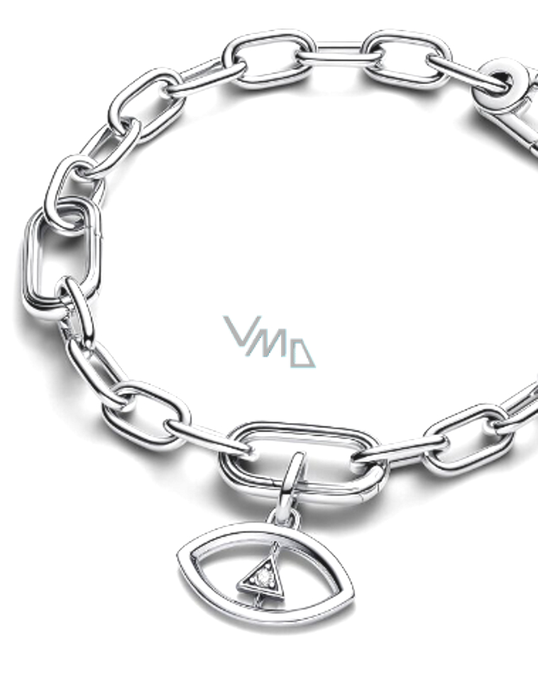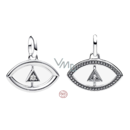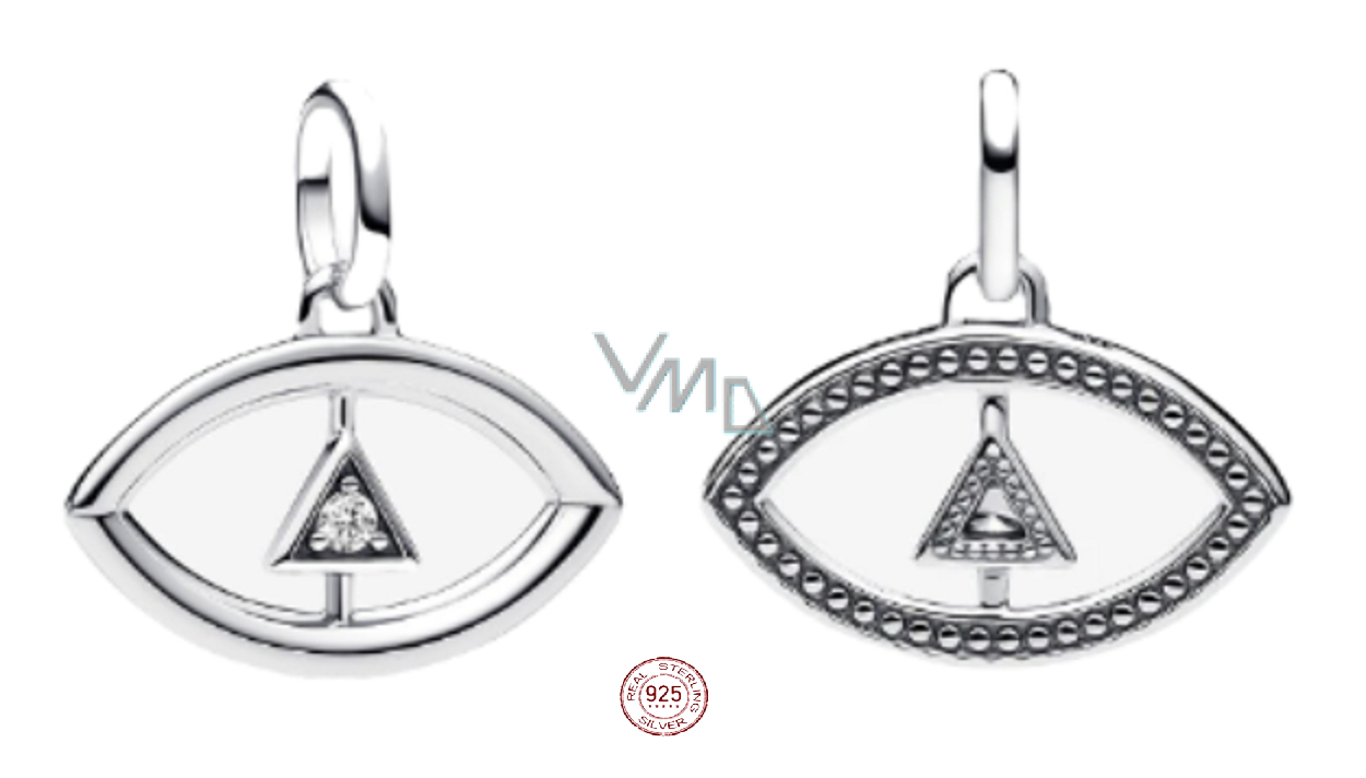 Medalionowy wisiorek Amulet przeciw urokowi, będziesz zawsze w dobrym nastroju. Ten srebrny wisiorek ma otwartą sylwetkę oka ozdobioną wystającymi liniami i mikro kulkami z jednej strony. Pośrodku oka znajduje się trójkąt z błyszczącym kamieniem z przedniej strony oraz trójkątny otwór i mikro kulki na tylnej stronie kamienia. Ten wisiorek przeciw urokowi, który jest idealnym dodatkiem do każdej kolekcji biżuterii, wniesie do twojego stylu interesujący akcent. Wisiorek można umieścić tylko na otwieranych łańcuszkach.
