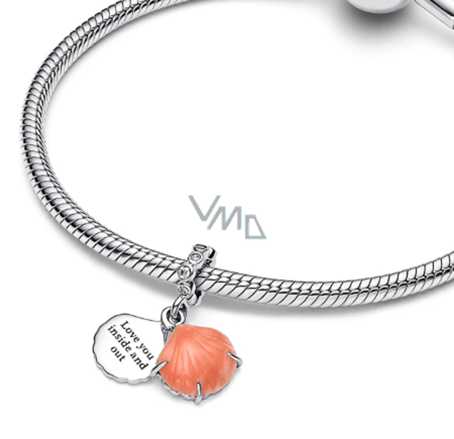 Charm Sterlingové stříbro 925 Mušle 2v1 s korálovou barvou, přívěsek na náramek příroda