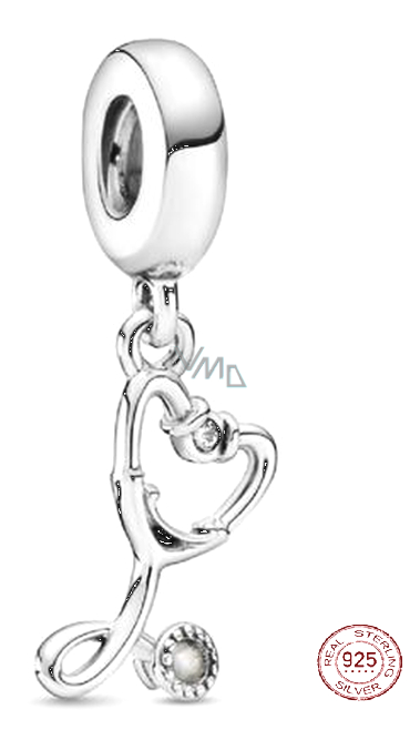 Zawieszka ze srebra 925 Stetoskop Serce, element do bransoletki z pasją