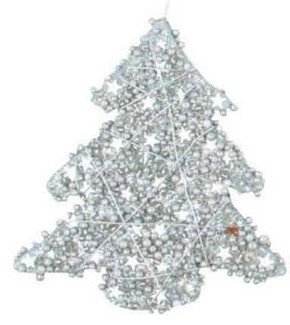 Stromeček se stříbrnými kuličkami, hvězdičkami a drátkem na zavěšení 10 cm