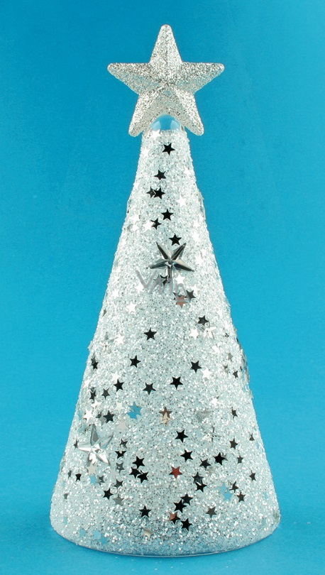 Stromek skleněný na postavení svítící LED 16 cm