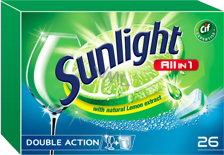 Nová Značka Sunlight nabízí kompletní řadu přípravků s dvojitou čisticí silou nejen pro zářivě čisté nádobí ale i myčku na nádobí. Vysoká účinnost přípravků Sunlight je dána unikátním složením obohaceným o extrakt z citrónu a účinné čisticí složky. Odborné znalosti značky Cif, která je odborníkem na čistotu, jsou také zárukou čisticí schopnosti přípravků Sunlight.