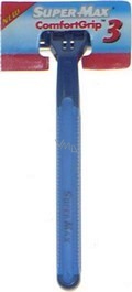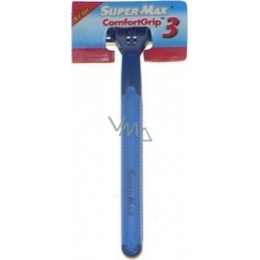 Super Max Comfort Grip 3 jednorázový holící strojek. Tříbřitvá hlavice se zvlhčujícím proužkem.