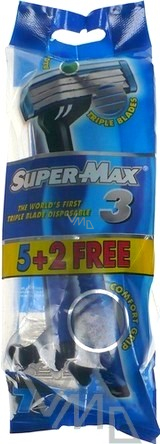 Super-Max Triple Blade pánský jednorázový 3břitý holící strojek 5 + 2 kusy zdarma. Kvalitní břity s platinovým ostřím umožňují snadné a rychlé holení. Břity jsou velmi odolné díky jedinečnému pochromování. Pohotové holítko má břity s dlouhou životností, takže ho nebudete muset tak často vyměňovat