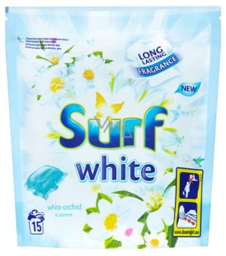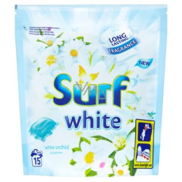 Surf White Orchid & Jasmine je dokonalé spojení dvou vůní s utišujícím vlivem. Pro bílou orchidej je charakteristická svěžest, zatímco jasmín má teplou, sladkou a uklidňující vůni. Jasmín má v Indii název „Královna noci”. Jeho vůně prý dokáže vyvolat optimistické a veselé pocity. Zklidňující kompozice Surf White Orchid & Jasmine je dostupná v podobě tekutého pracího prostředku, pracího prášku i gelových kapslí. Doporučujeme tuto variantu používat na bílé prádlo.