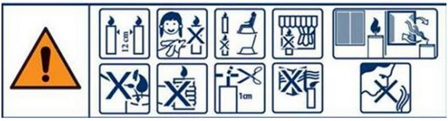 Nikdy nenechávejte hořící svíčky bez dozoru! Nenechávejte hořící svíčku v dosahu dětí a domácích zvířat o samotě. Ujistěte se prosím, že vždy svíčky hoří ve vzdálenosti 10 cm od sebe a že nad svíčkami je dostatek prostoru na teplo, které vydává plamen. Ujistěte se prosím, že svíce jsou dostatečně vzdáleny od lehce zápalných předmětů.