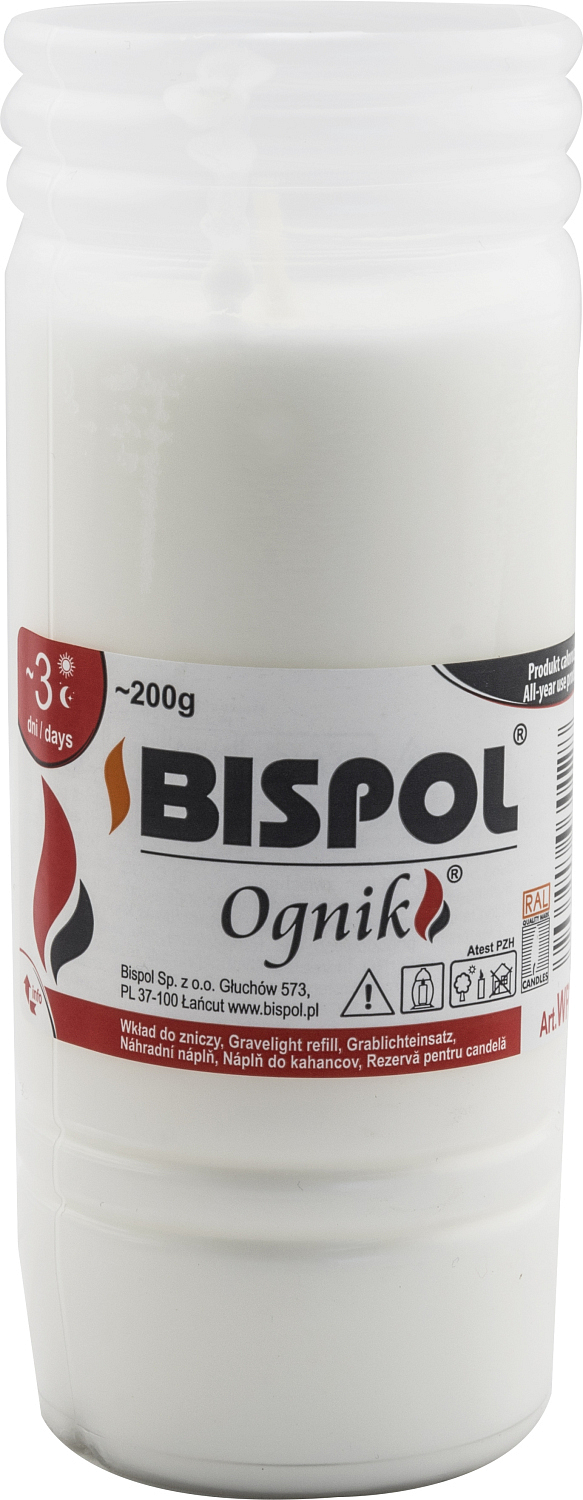 Bispol OGNIK olejowa świeca WP3. Szczególnie odpowiednia jako wkład do zniczy cmentarnych. Bardzo wysokiej jakości świeca odlewana, która 100% się wypala.