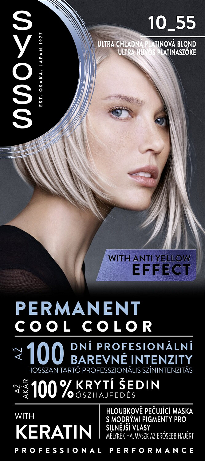 Doświadczenie uczucia świeżo farbowanych włosów jak z salonu w wygodzie własnego domu z Syoss Blond. Chłodne i popielate bez niepożądanych żółtych tonów ani siwych włosów. Trwała. Skoncentrowane pigmenty blond wnikają głęboko w strukturę włosa, neutralizując żółte tony i zapewniające profesjonalne pokrycie siwych włosów. Rozjaśnienie aż o 4 odcienie. Aż o 70% mniejsza łamliwość włosów* oraz profesjonalne pokrycie siwych włosów (*w porównaniu z niepoddanymi obróbce włosami).