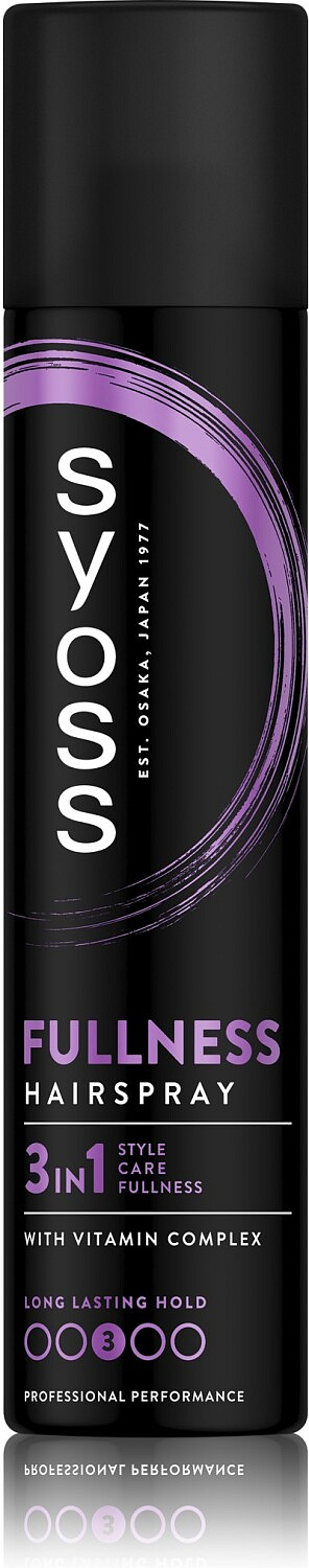 Pełnia fryzury, objętość & ekstra mocne utrwalenie. Zainspirowany salonami SYOSS Full Hair 5 dla zwiększenia gęstości i objętości, opracowany i testowany przez fryzjerów, to pierwszy profesjonalny produkt do stylizacji włosów dla widocznie pełniejszej fryzury, objętości, 48h utrwalenia, siły i długotrwałej stylizacji.