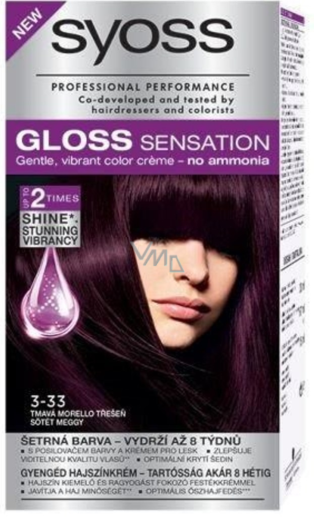 Syoss Gloss Sensation Šetrná barva na vlasy bez amoniaku 3-33 Tmavá morello třešeň 115 ml