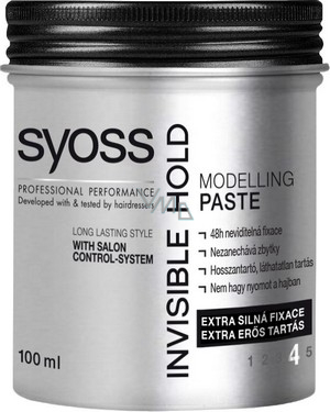 Tvarující pasta na vlasy Syoss Invisible Hold pro 48hodinovou neviditelnou extra silnou fixaci. Pro perfektně tvarovatelné a spolehlivé stylingové výsledky. Vlasy neslepuje, nezanechává zbytky.