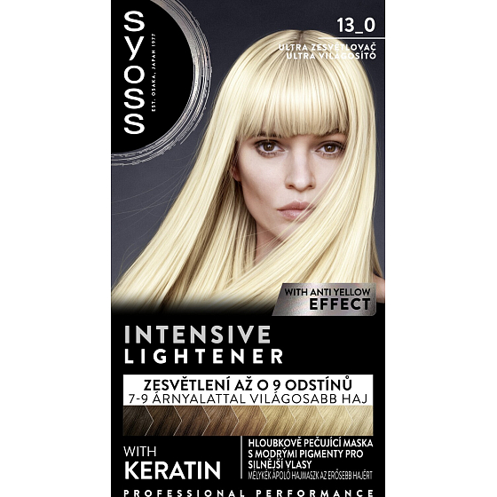 Doświadcz uczucia dopiero co farbowanych włosów jak z salonu w wygodzie swojego domu z Syoss Blond. Jasny, kryształowy blond z rozjaśnieniem aż o 9 odcieni. Trwały. Silne substancje rozjaśniające wnikają głęboko w włókno włosa, rozjaśniają włosy i pomagają neutralizować niepożądane żółte tony. Profesjonalny system przeciw uszkodzeniom odbudowuje uszkodzone wiązania włosów i wygładza powierzchnię włosa dla lepszej widocznej jakości włosów, którą możesz poczuć w dotyku. Dokładna aplikacja bez spływania dla profesjonalnego rezultatu kolorystycznego.