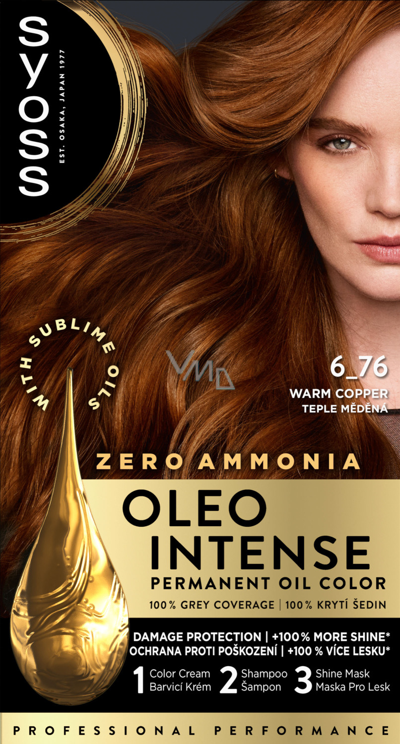 Farba do włosów Syoss Oleo Intense z olejową formułą bez amoniaku zapewnia długotrwałe, delikatne farbowanie oraz profesjonalne pokrycie siwych włosów. Formuła z olejami pielęgnacyjnymi wspiera wnikanie barwników głęboko w włosy dla wysokiej intensywności koloru i jego trwałości. W opakowaniu znajduje się balsam pielęgnacyjny z olejem arganowym fair trade, który pozostawia włosy gładkie, delikatne i pełne blasku. Intensywnie dba o włosy po farbowaniu, sprawiając, że wyglądają na mocne i zdrowe.
