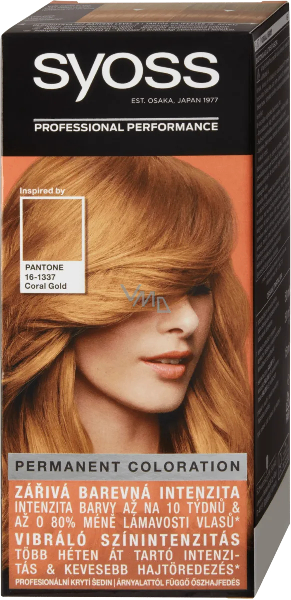 Syoss barva na vlasy Pantone intenzivně a šetrně pečuje o vaše vlasy a zmírňuje jejich lámavost až o 80 %. Vyzkoušejte odstín korálově zlaté, který spojuje energii a kreativitu a představuje mladistvou sílu a jistotu něčeho nového. Přítomnost broskvových a růžových tónů připomíná ohnivý západ slunce a vodní chvění. syoss Pantone barva na vlasy je k vlasům šetrná a zaručuje dokonalý výsledek, který skutečně trvá.